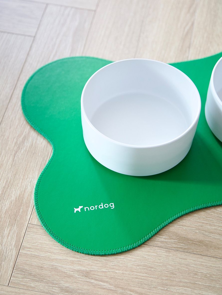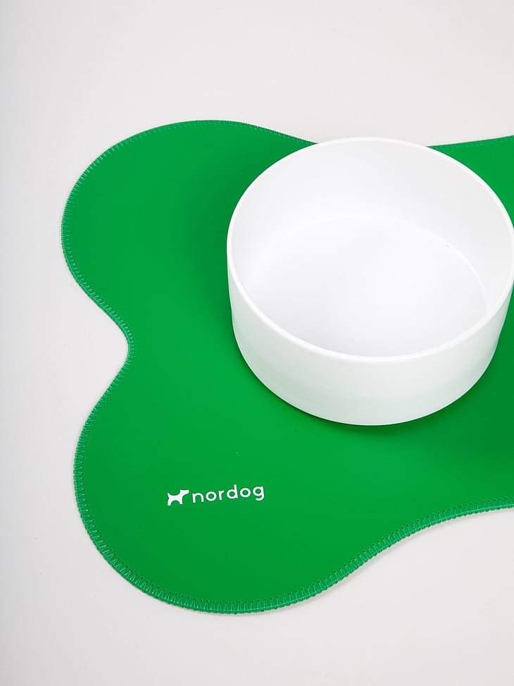 Underlaget fra Nordog er lavet i et vandtæt materiale og er formet som et hundekødben. Underlaget sørger for at beskytte dit gulv mod pletter samtidig med, at skålenes bund holder sig pæne. Du kan let rengøre underlaget med en fugtig klud.