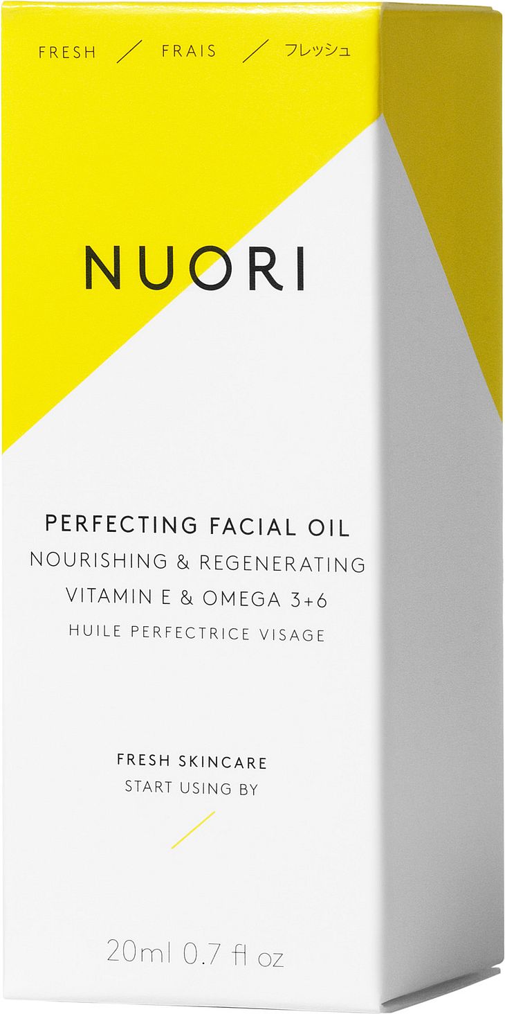 NUORIs signaturblend af naturlige essentielle olier tilføjer ren, luksuriøs næring til alle hudtyper. Perfecting Facial Oil, der er formuleret til at matche hudens naturlige lipide balance, absorberes nemt og efterlader huden glat og smidig.