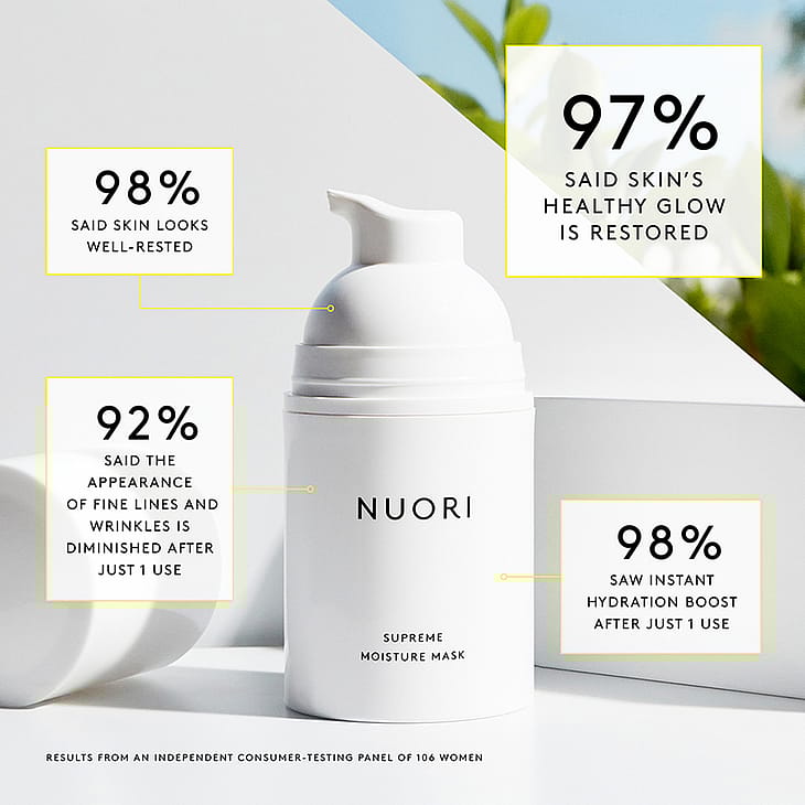 Supreme Moisture Mask er NUORIs lette, men samtidig højtkoncentrerede fugtgivende maske er det ultimative produkt til dehydreret og livløs hud.