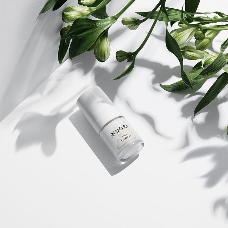 Vital Eye Cream fra NUORI er en let creme, ideel til at reducere de første ældningstegn i den sarte hud omkring øjnene.