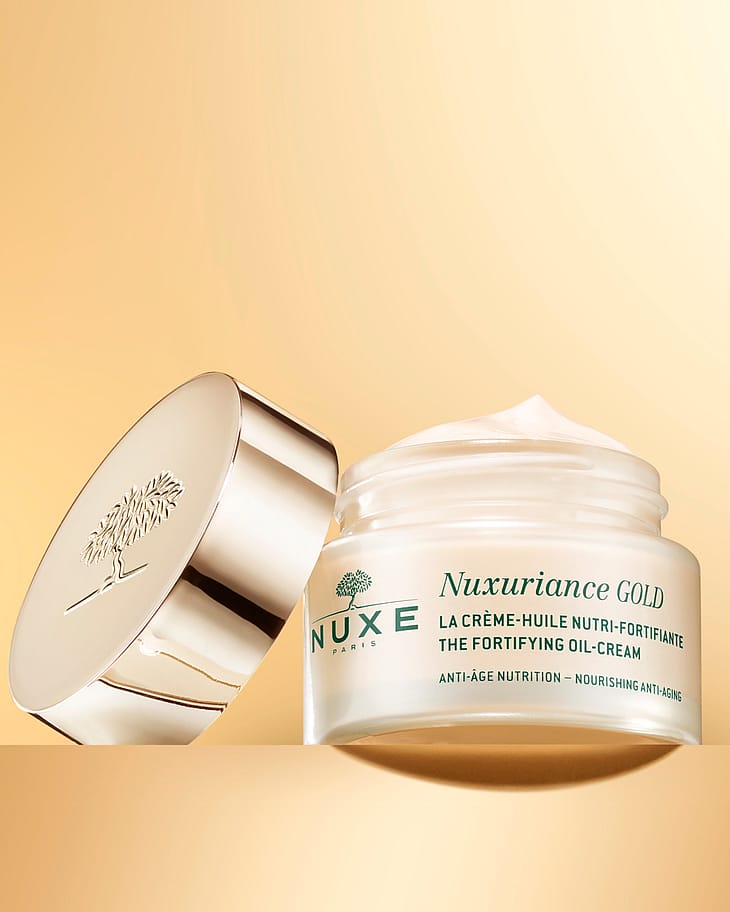 Nuxuriance Gold Oil Cream er en næringsforstærkende olie-creme der kombinerer kraften fra Safran og Bougainvillea Bi-Floral® celler, Porcelæn Rose Oleoactive og et naturligt næringsgenoprettende kompleks for absolut anti-aging effekt.