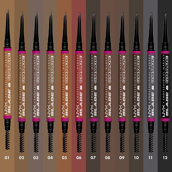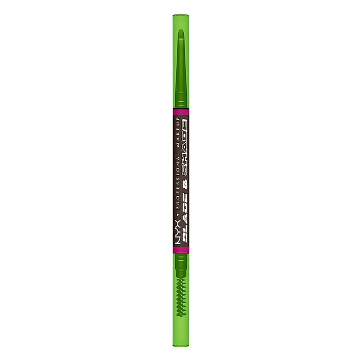 Blade & Shade er vores første øjenbrynsblyant med både skarp og flad spids for præcis optegning og naturlig skygge af brynene. Tegn små, nano-tynde streger, vend blyanten og børst for at skabe et look der er inspireret af microblading. Holder i op til 16 timer. Findes i mange nuancer. Tværer ikke ud og smitter ikke af.
