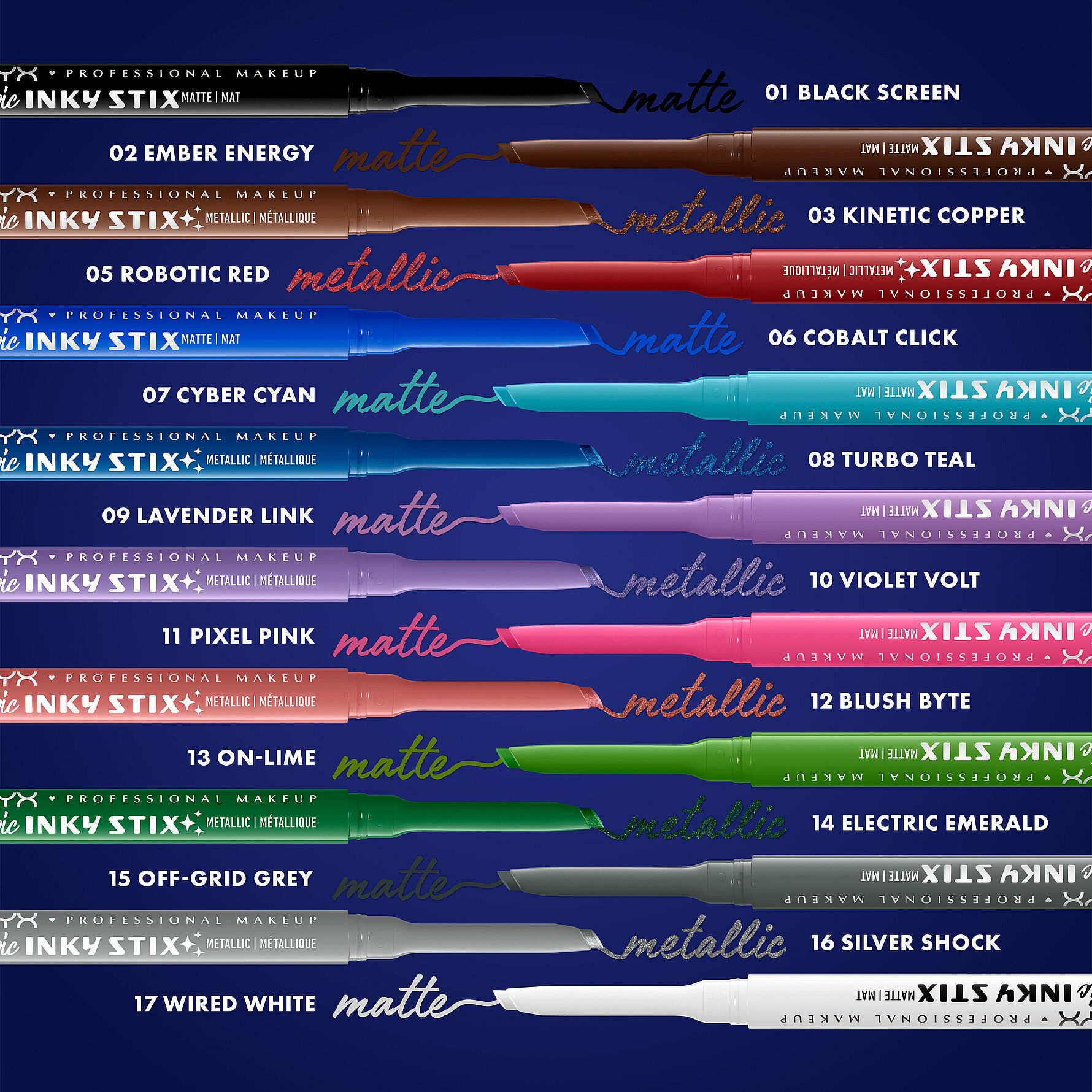 NYX Professional Makeup Epic Inky Stix er en lækker, cremet, vandfast gel-eyeliner. Den pigmenterede og cremede formel giver en smuk farve med kun 1 strøg og holder hele dagen.