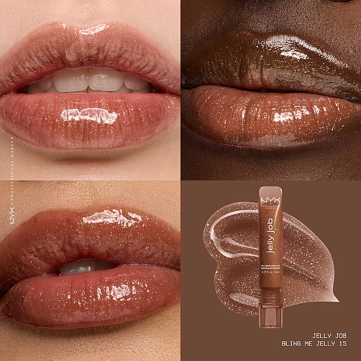 GELÉ-BLØDE LÆBER & GLASLIGNENDE GLANS. Glans som plejer! Få fyldig, skinnende læber med NYX Professional Makeup Jelly Job, som med stolthed er produceret i Korea.