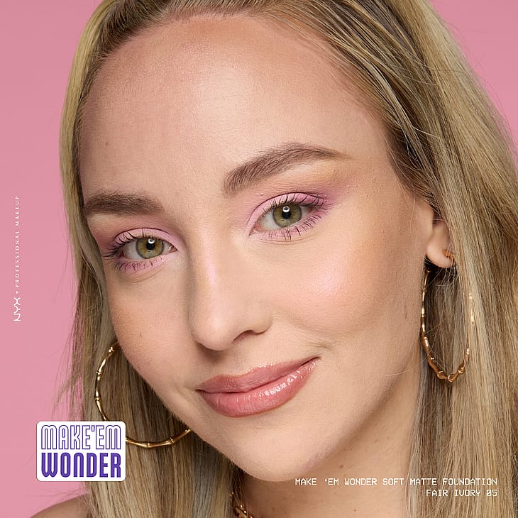 NYX Professional Makeup Make'em Wonder foundation er beriget med hudplejeingredienser, dækker alt men føles stadig vægtløs på din hud. Holder hele dagen og ligner din hud - bare mere glat, jævn og strålende.