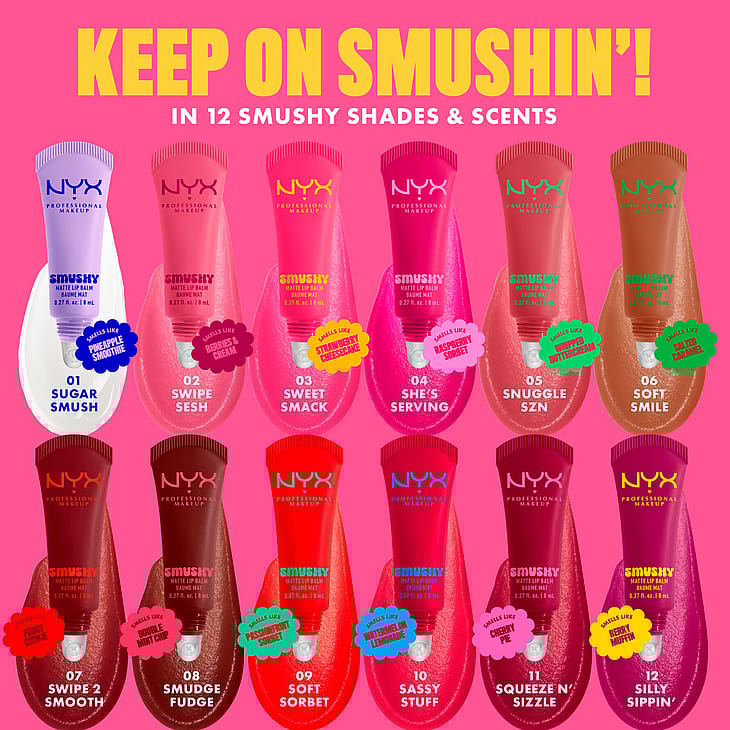 Smushy Matte Lip Balm er en lipbalm i blide, matte nuancer for dig der vil have en behagelig læbefarve der er nem at påføre.