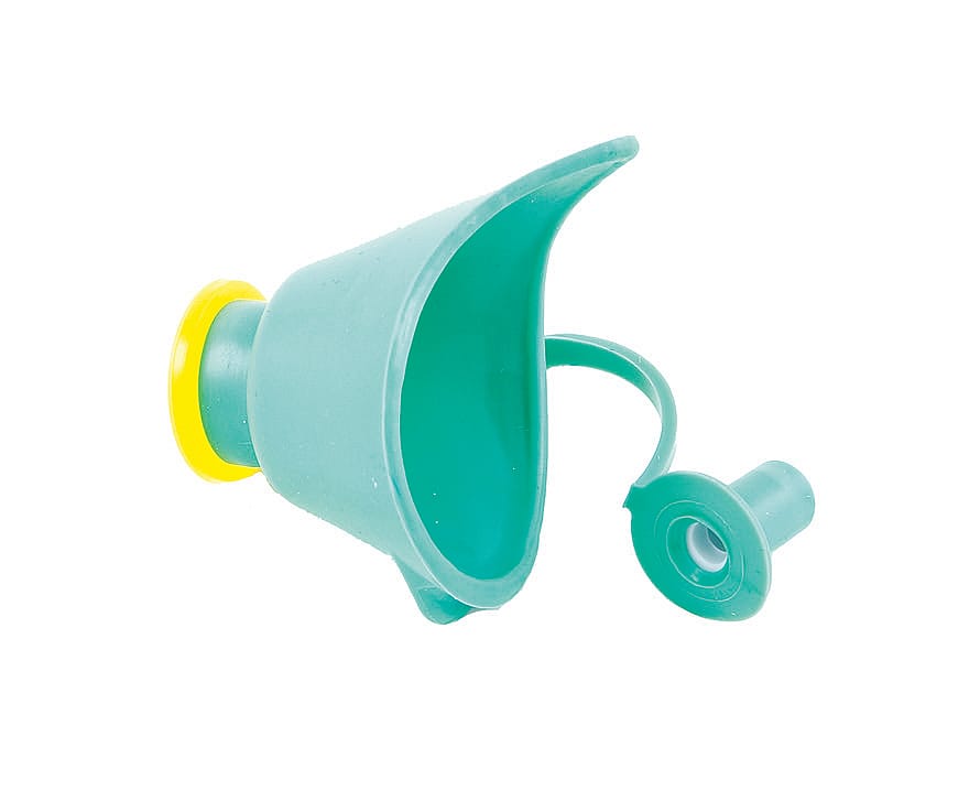 Læn hovedet tilbage, hold flasken hen over dråbedrypperen og tryk let på flasken.
