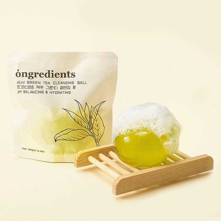 Vi præsenterer Ongredients Jeju Grøn Te Rensekugle - en unik renseopløsning, der efterlader din hud blød og fugtig.