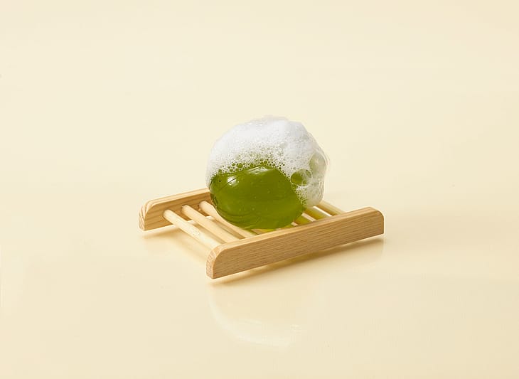 Rensekugle med grøn te. Fugter og plejer huden nænsomt.