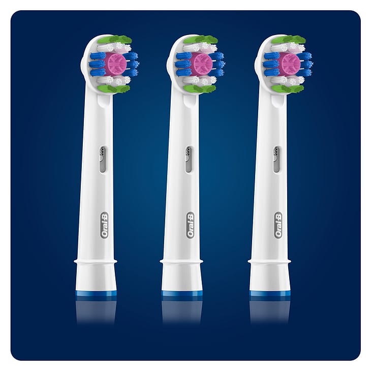 Oral-B’s forbedrede 3D White børstehoveder er udviklet med CleanMaximiser teknologi, der farver grønne børstehår gule, når det er tid til at udskifte børstehovedet, for at sikre de bedste resultater fra børstehovedet og den bedste tandbørstning. De unikke børstehår fjerner plak og giver en mere avanceret rengøring end en almindelig, manuel tandbørste.