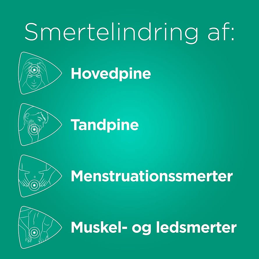 Anvendelse: Mod svage smerter f.eks. hovedpine, menstruationssmerter, tandpine, muskel- og ledsmerter, samt for at nedsætte feber f.eks. ved forkølelse og influenza.