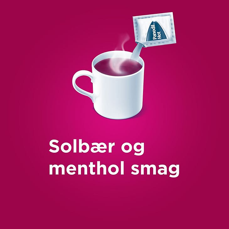 Panodil® Hot (paracetamol) 500 mg Gør noget ved ubehaget, når du er forkølet. Med Panodil kan du lindre svage smerter og nedsætte feber. Varm drik med solbærsmag. Panodil Hot er et afdelt pulver med kraftig solbærsmag og duft af mentol. Pulveret opløses i kogende vand og drikkes langsomt.