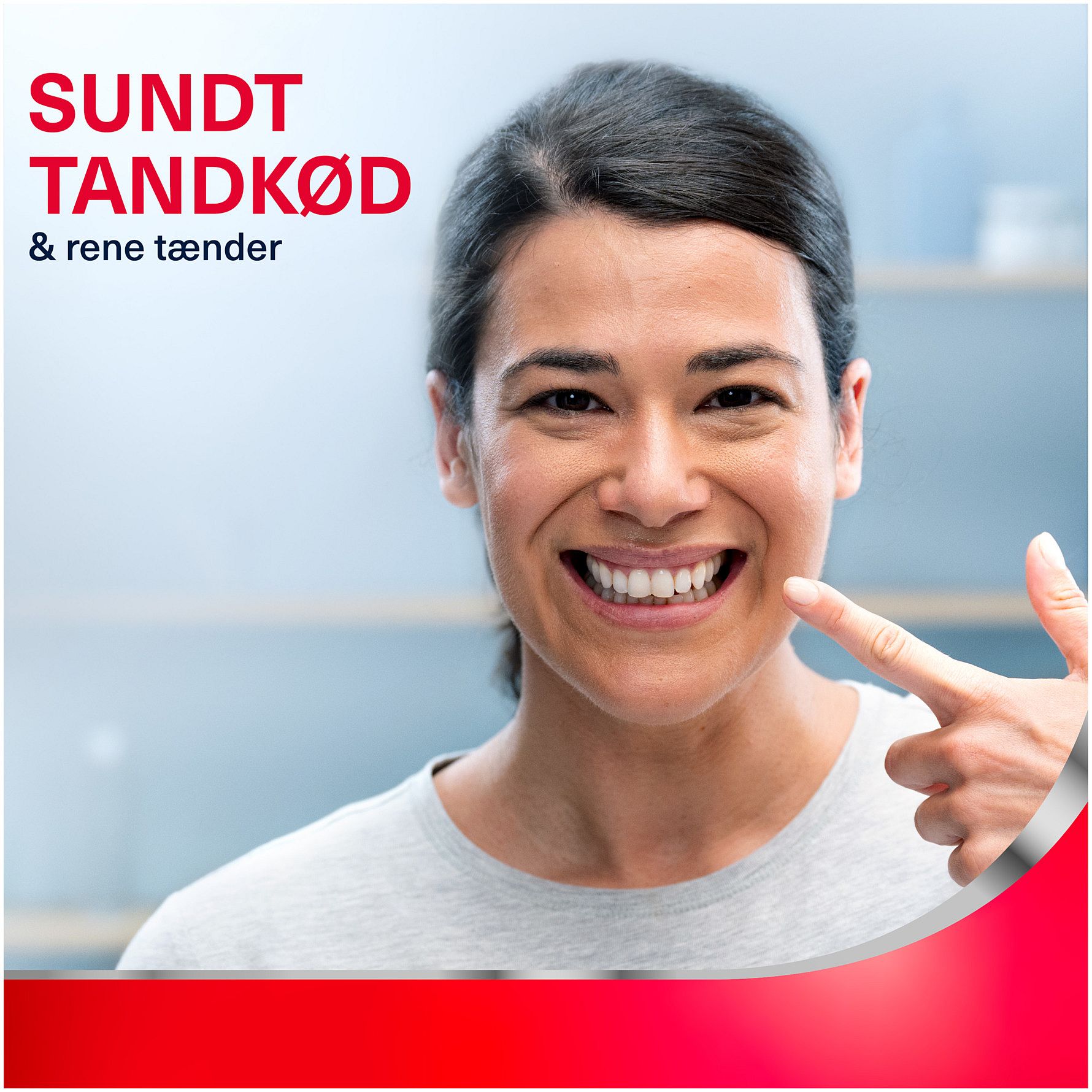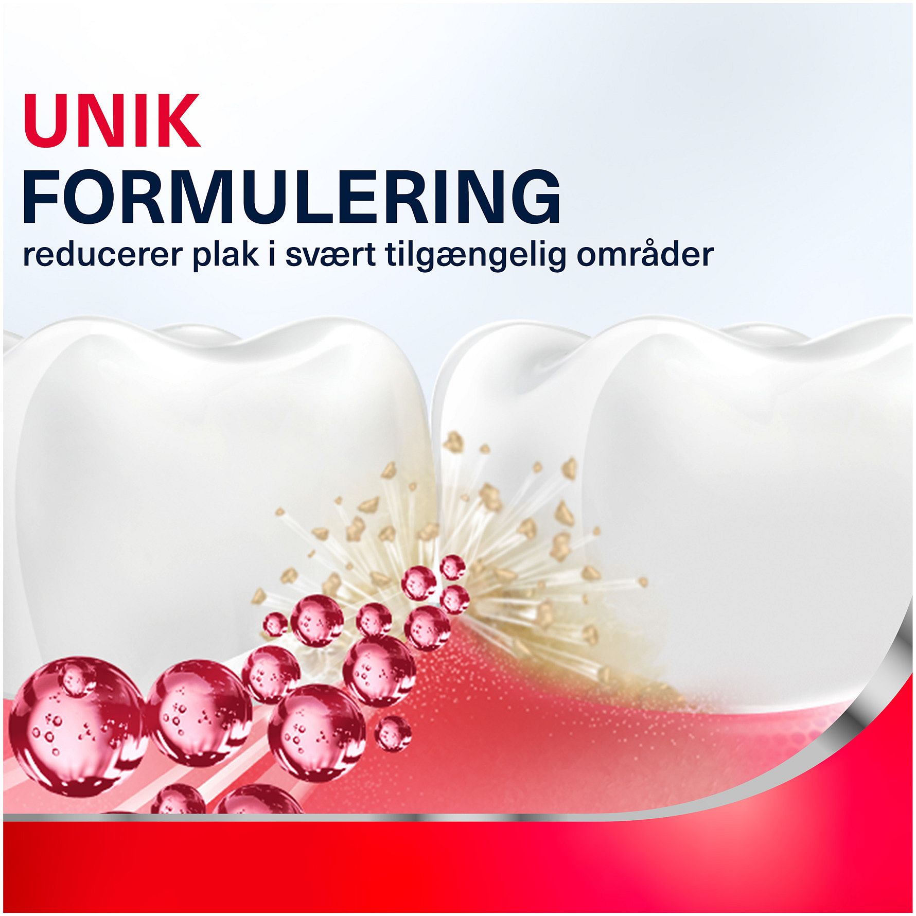 Kontakt tandlæge dersom symptomerne vedvarer eller forværres, eller hvis børn har blødende tandkød. Ophør med brugen, hvis irritation opstår. Tal med din tandlæge eller læge så hurtigt som muligt, hvis du oplever hævelse af mund eller ansigt. Ikke egnet for børn under 12 år. Opbevares utilgængeligt for børn. Må ikke anvendes, hvis forseglingen er brudt.
