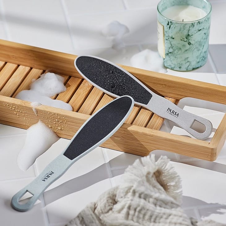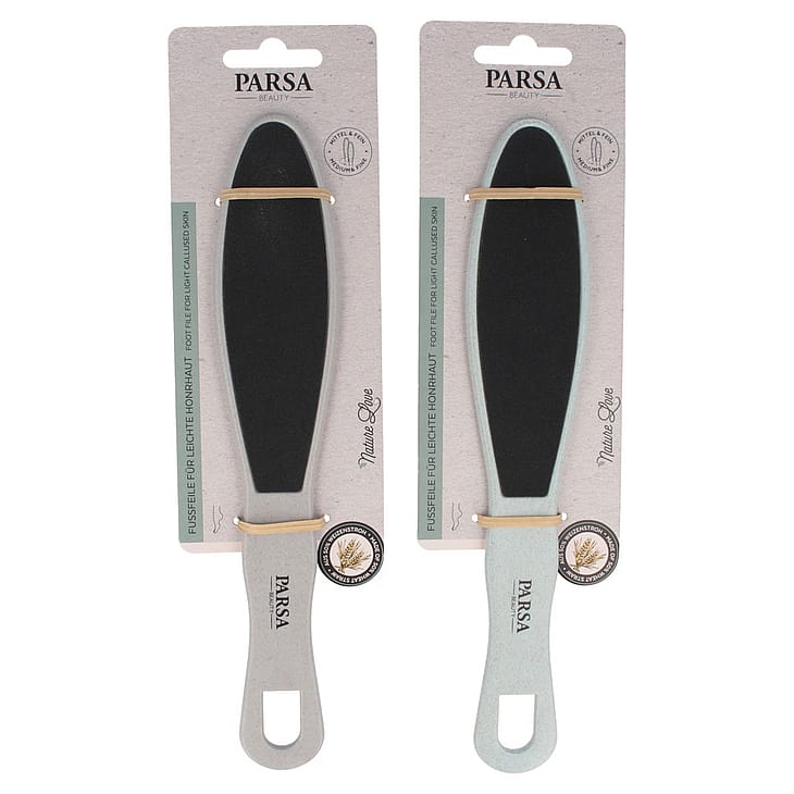 Parsa fodfilen er lavet af 50% hvedehalm. Den er ideel til ubesværet fjernelse af lettere hård hud. Den grove side fjerner den uønskede hårde hud. Den fine side udglatter huden og efterlader fødderne bløde. Vaskbar. Rengør regelmæssigt.