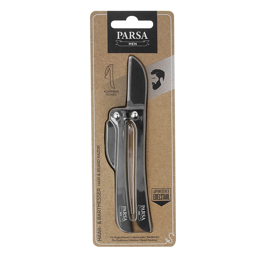 Hår & skæg barberskrabere, lavet af særligt skarpt japansk stål er ideel til præcis kontur af skæg, øjenbryn og hårgrænse. Materiale: Rustfrit stål og plast