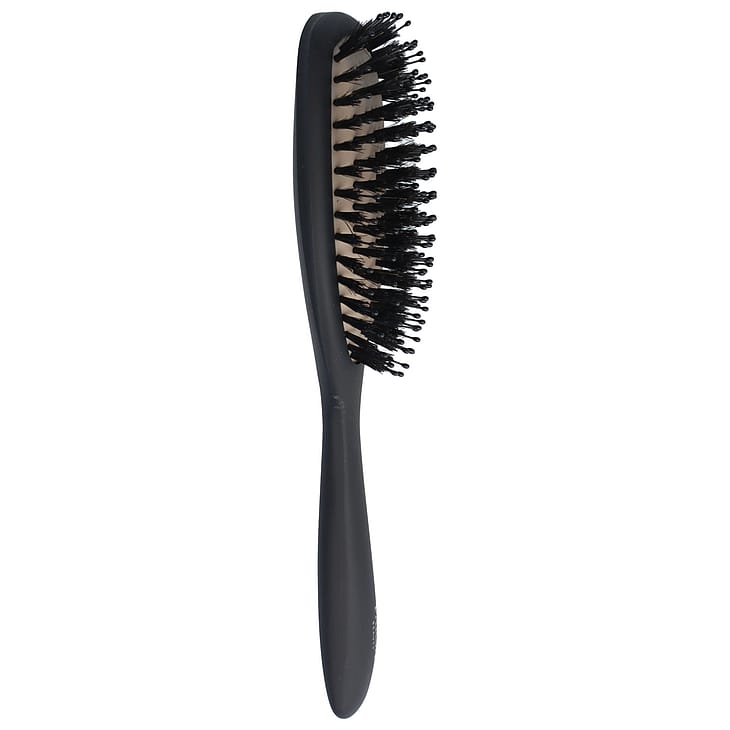 De ekstra afrundede plastpins masserer blidt din hovedbund, hvilket stimulerer blodcirkulationen på en naturlig måde. Kombinationen af naturbørster og nylonpins fremmer ionudvekslingen og giver håret en strålende glans ved hver børstning. Med det silkebløde soft-touch-greb får du en børste, der ligger perfekt i hånden, selv når håret er vådt, og sikrer maksimal komfort ved brug.
