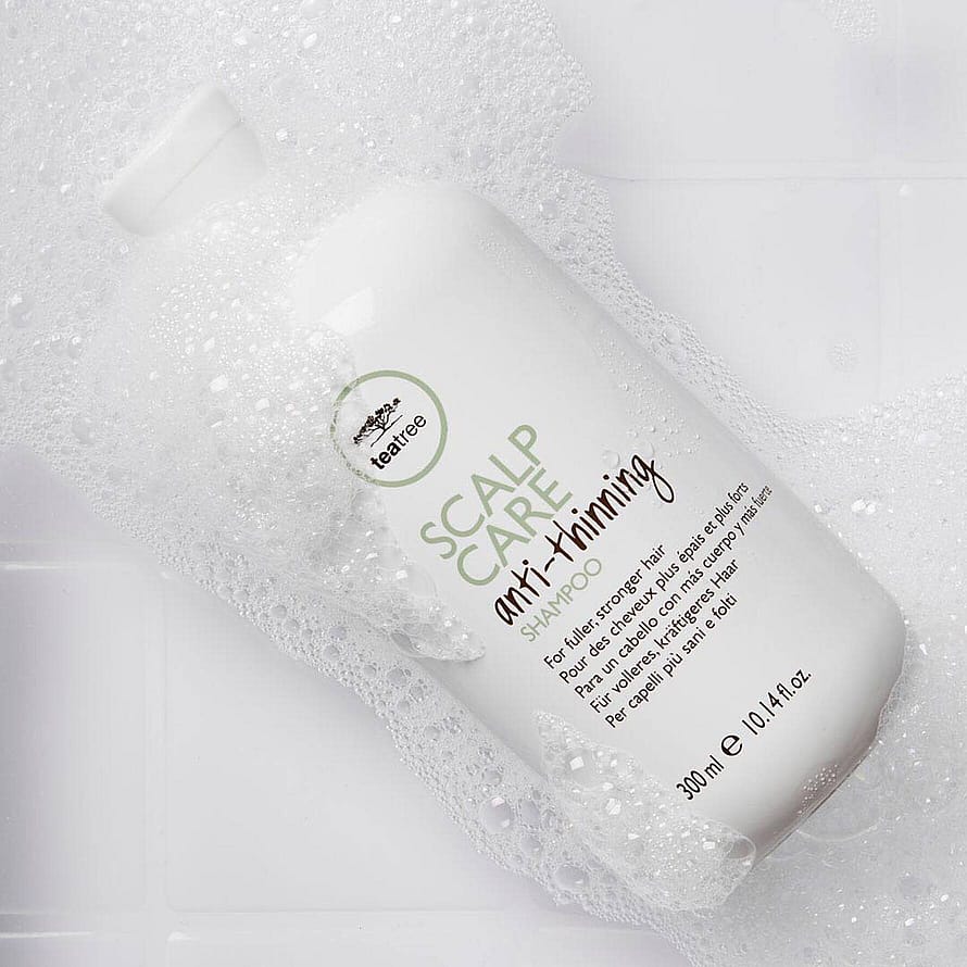 Tea Tree Scalp Care serien er til dig med tyndt hår som ønsker et tykkere hår. Shampoo og conditioner skal bruges i kombination ved hver hårvaks, mens tonic sprayes i hovedbunden morgen og aften. Håret vil efter noget tid både se og føles tykkere.