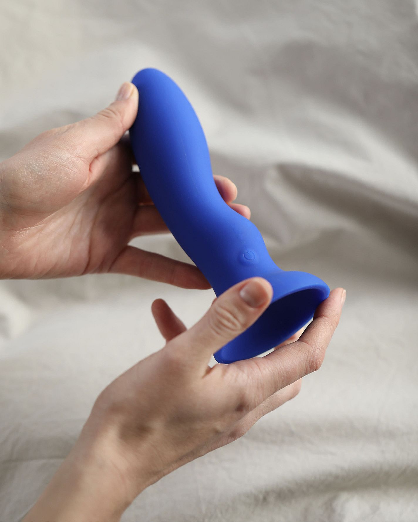 Toosie er en kraftfuld og kurvet dildo, der kombinerer vibration og sugekop for maksimal nydelse og frihed. Den har en smuk blå farve og en fleksibel form, som er skabt til at stimulere præcis dér, hvor du ønsker det – både indvendigt og udvendigt.