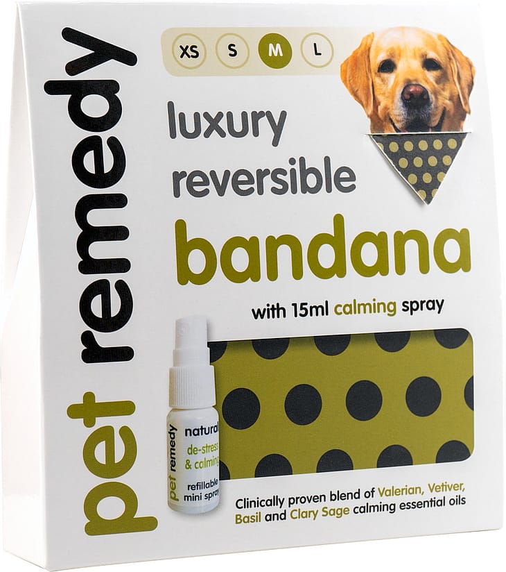 Pet Remedy har lavet en bandana, som er beregnet til at binde rundt om hunden eller kattens hals. Bandanaen er i 2 forskellige farver og er vendbar. Bandanaen er i størrelse medium fx Labrador.
