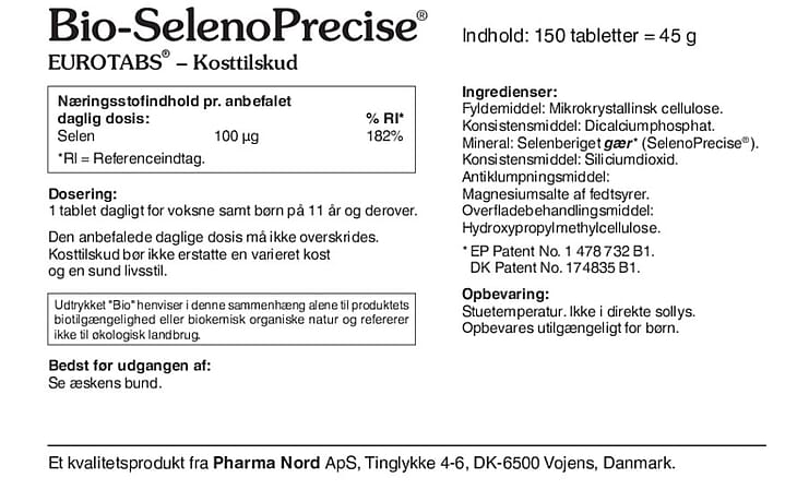 100 µg af den veldokumenterede og patenterede SelenoPrecise selengær.