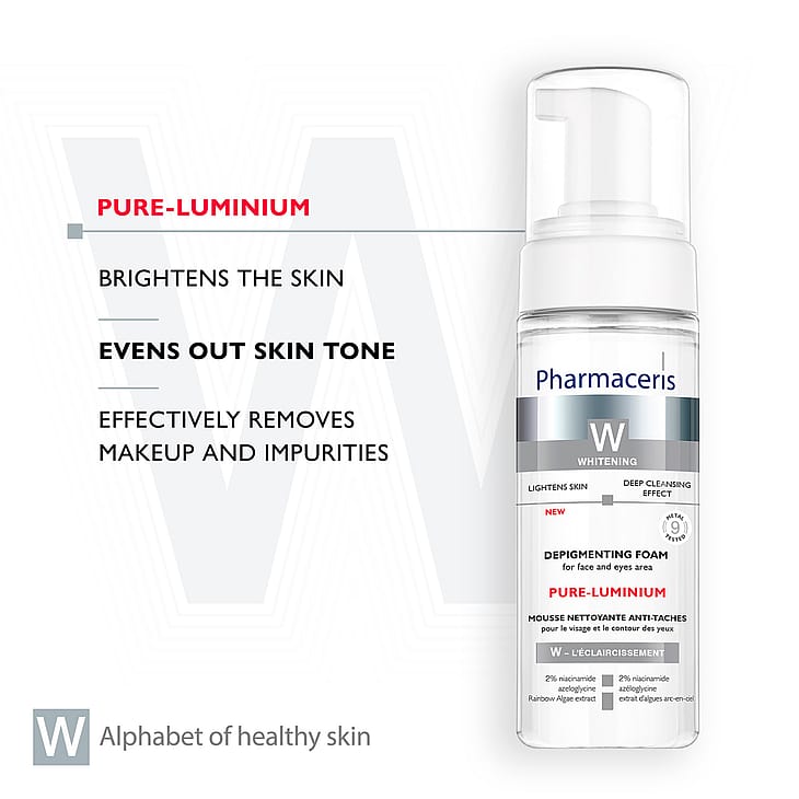 Denne skum fjerner effektivt makeup og urenheder fra ansigt og øjenområde, samtidig med at den lysner huden. Kombinationen af ingredienser, der hæmmer melanogenese (niacinamid, azeloglycin og Rainbow Algae), viser høj effektivitet i at udjævne og lysne hudtonen.