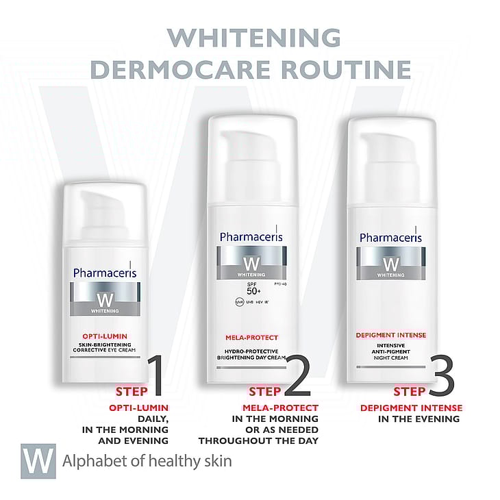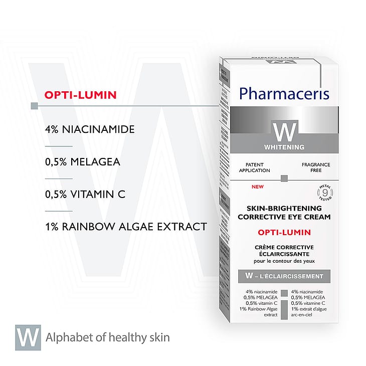 Denne creme med forbedret depigmenterende effektivitet reducerer synligt hævelser, mørke rande og poser under øjnene. Formuleret med det lysnende kompleks (P.440431) MELAGEA (glabridin, ellaginsyre), som har en ansøgt patent og en klinisk dokumenteret hæmmende effekt på enzymet tyrosinase, der er ansvarligt for melanogenese-processen.