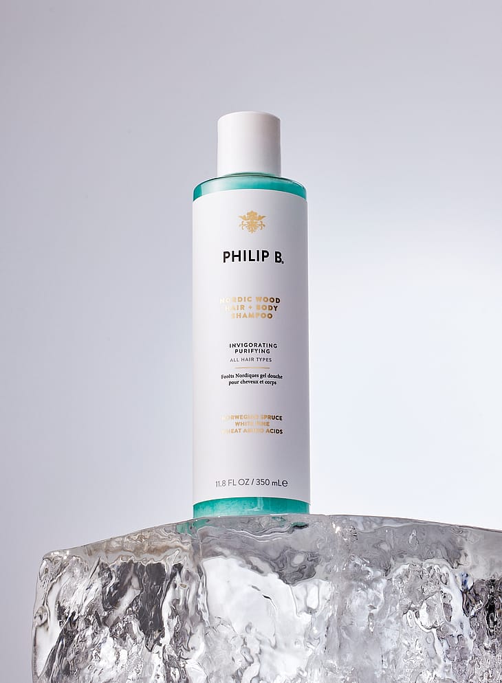 PHILIP B® Nordic Wood Hair & Body Shampoo forfrisker sanserne, mens den køler, stimulerer og opfrisker krop og sjæl.