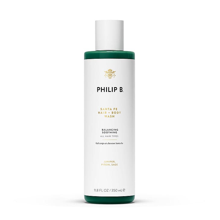 PHILIP B® Scent of Santa Fe Balancing Shampoo beroliger, nærer og renser håret med en urtebaseret blanding af shea butter og panthenol (vitamin B5). Shampooen indeholdende 10% udtræk af naturlige planteekstrakter fra pinjetræ, salvie og enebær. Produktets spirituelt berigende duft fremmaner en stemning fra Sangrê de Cristo-bjergene i Santa Fe.