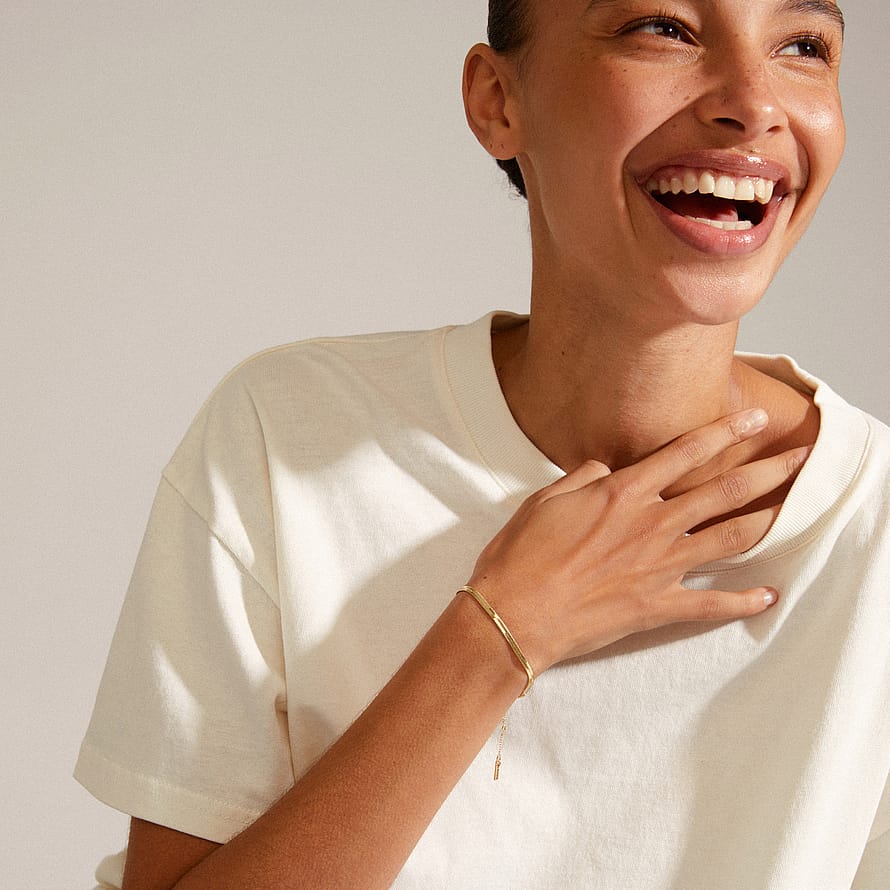 Own your glow! Det guldbelagte flat snake chain armbånd fra Pilgrims Classics-kollektion er din nye everyday favourite. Den glatte finish giver et clean, powerful look, der tilføjer classy vibes til både casual outfits og dressed-up moments. Et must-have piece med timeless appeal og effortless shine – perfekt til både at style solo eller som en del af et stacked look. Armbåndet er i vandfast kvalitet og fremstillet af 99% genanvendt materiale – fashion med omtanke.