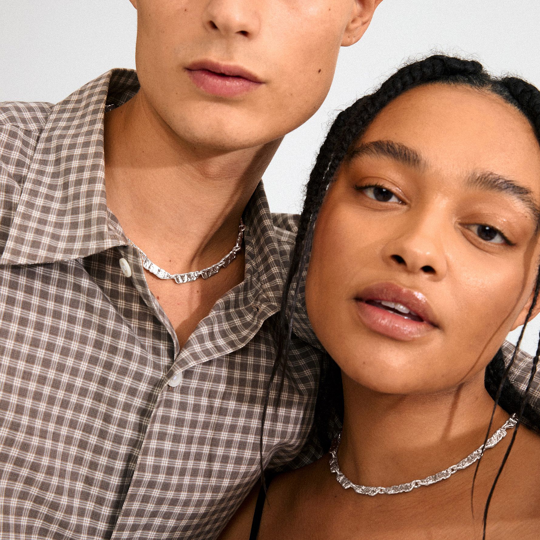 Style med et oversized jakkesæt og rustikke hoops for en cool, edgy vibe. INSTANT halskæden er produceret af 99% genanvendt materiale - that's fashion with a conscience. Halskæden har en længde på 38 cm + 15 cm forlængerkæde.