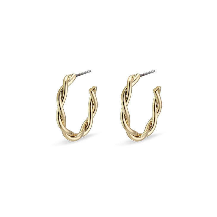 Twist it up! NAJA creoler med snoet design, der giver et nyt twist på de klassiske hoops. De snoede detaljer fanger lyset smukt i de guldbelagte ringe og tilføjer et elegant touch til dit look. Style dem med en strikket sweater for et cozy chic look. Et par øreringe, der hurtigt bliver en go-to favorit i din samling.