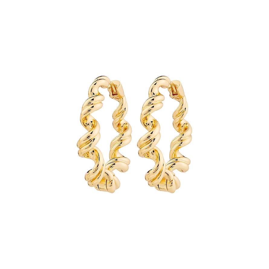 Get ready for new adventures med de guldbelagte LARISA hoops fra Pilgrim. Øreringene har en smuk, snoet silhuet, med bløde twirls der minder om bølgende spiralkrøller. Perfekte til at give dit outfit et free-spirited lux-boho look. Produceret med omtanke for miljøet af 99% genanvendt materiale – det ultimative tilbehør til dine summer styles.