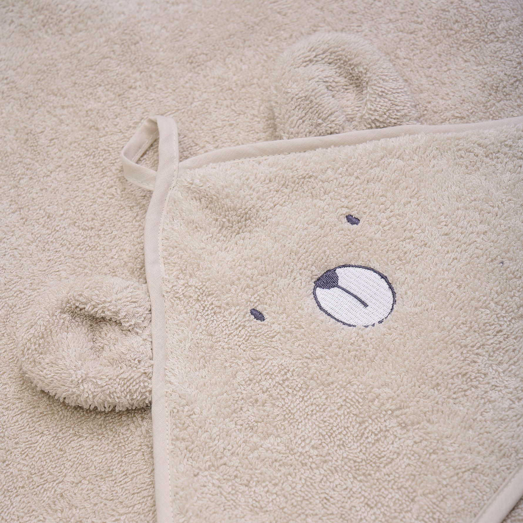 Håndklæde med hætte i blød frotté. Perfekt til at tørre og holde barnet varmt efter badet. Vaskes ved 60 grader.