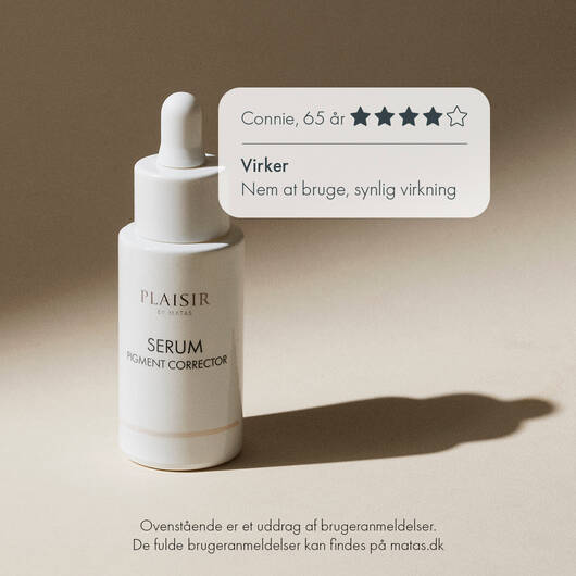 Et serum er den mest koncentrerede formel i forhold til aktive ingredienser. Derfor arbejder Plaisir Pigment Corrector dybt i huden med at reducere pigmentering og ensarte hudtonen. Giver desuden masser af fugt og mindsker synligheden af rynker. Bruges morgen og aften.