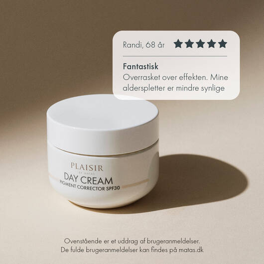 Ved forebyggelse af pigmentforandringer er daglig solbeskyttelse et vigtigt trin i din rutine. Derfor indeholder Pigment Corrector Day Cream solfaktor 30, der forebygger nye pigmentpletter. Den reducerer desuden pigmentering, og styrker samtidig hudens spændstighed samt skaber balance.