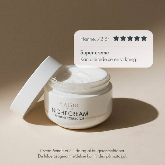 Om natten regenerer vores hud, og derfor er det godt med en natcreme, der understøtter denne proces. Og det er, hvad Pigment Corrector Night Cream gør ved at øge cellefornyelsen og stimulere kollagendannelse, samtidig med den opstrammer og reducerer pigmentforandringer.