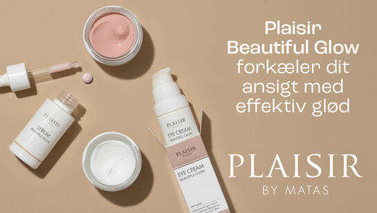 Plaisir Beautiful Glow serien bekæmper aldringstegn med aktive og effektive ingredienser, og genskaber hudens ungdommelige udstråling. Vi kalder det Nordice Skin Science, og du fortjener at mærke det på din egen hud.