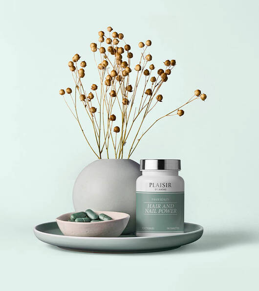 PLAISIR INNER BEAUTY HAIR AND NAIL POWER er et kosttilskud med nøgleingrediensen Biotin.