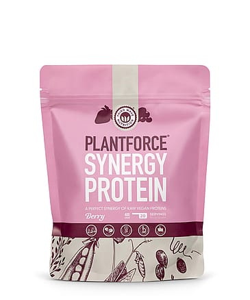 Plantforce Synergy Protein er et lækkert plantebaseret proteinpulver lavet af græskarprotein, ærteprotein og brune risproteiner. Kan anvendes af alle. Perfekt til dig som søger et vegansk proteinpulver der er velsmagende og har et højt proteinindhold.