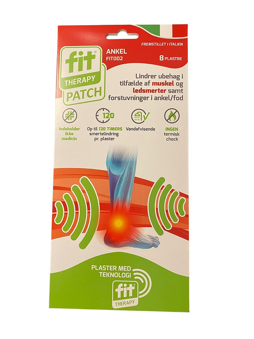 FIT smertelindrende plaster til anklen. Anvendes ved ankelsmerter, led- og muskelsmerter.
