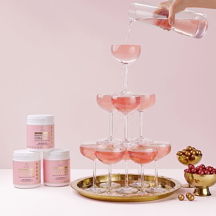 • Pink Grapefruit – En forfriskende, sød og let bitter kollagendrik. Blandes nemt i koldt vand, smoothies eller dine foretrukne drikke.