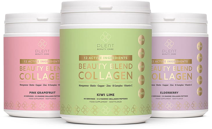 Kosttilskud. PLENT Beauty Blend Collagen indeholder klinisk testet marine kollagenpulver med 100% hydrolyserede Naticol® marine kollagenpeptider der reducerer rynker.