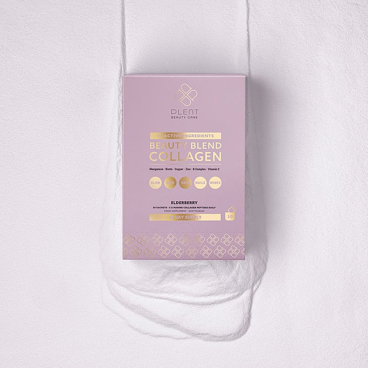 Kosttilskud. PLENT Beauty Blend Collagen indeholder klinisk testet marine kollagenpulver med 100% hydrolyserede Naticol® marine kollagenpeptider der reducerer rynker.