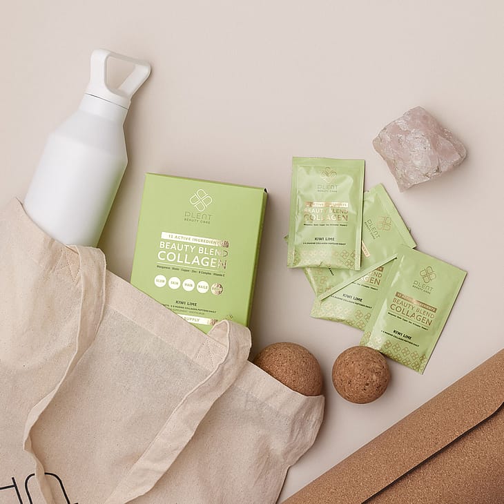 Kosttilskud. PLENT Beauty Blend Collagen 30 day Supply Box indeholder klinisk testet marine kollagenpulver i lette sachetter, nemt at have med på farten. 100% hydrolyserede Naticol® marine kollagenpeptider der reducerer rynker.