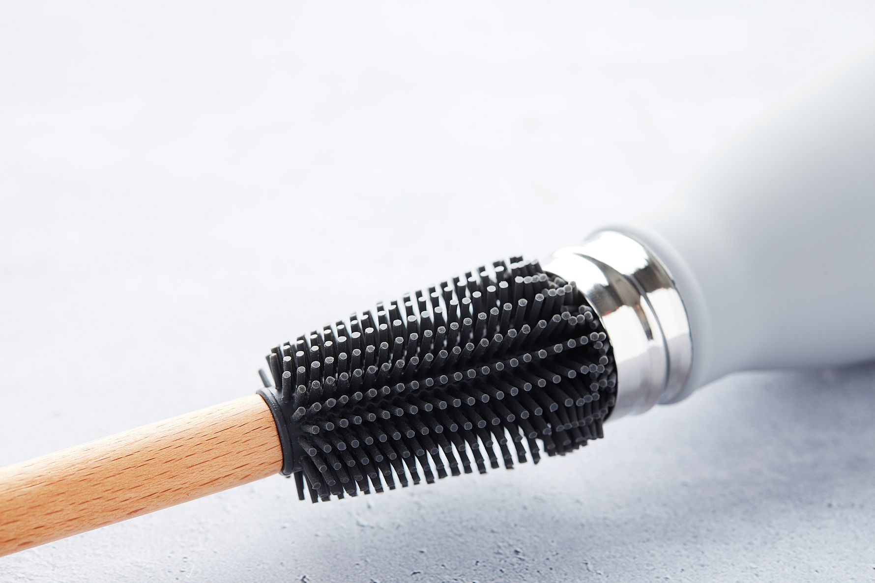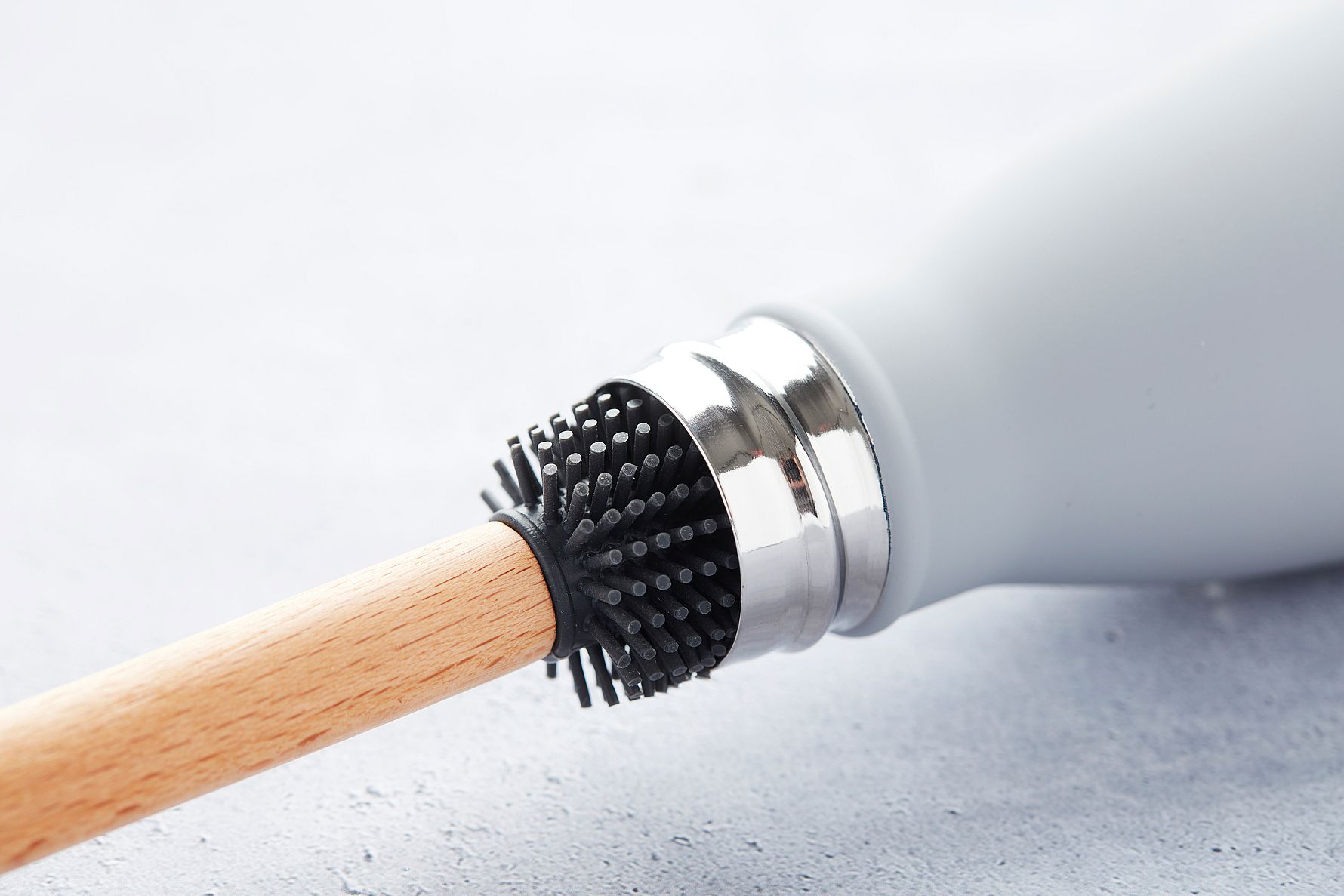 Fleksibel børste med bløde silikonebørster og træskaft.