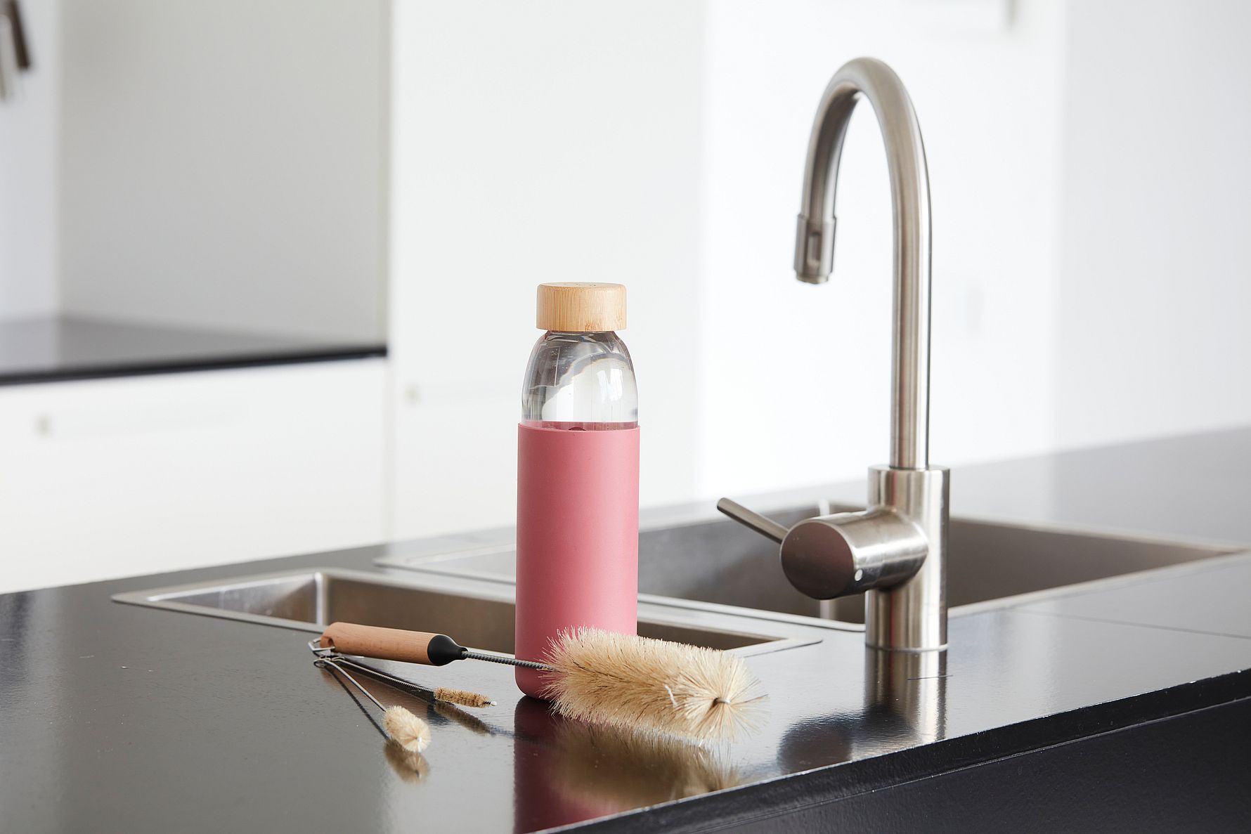 Effektive børster i forskellige størrelser til grundig rengøring af flasker og smalle beholdere.