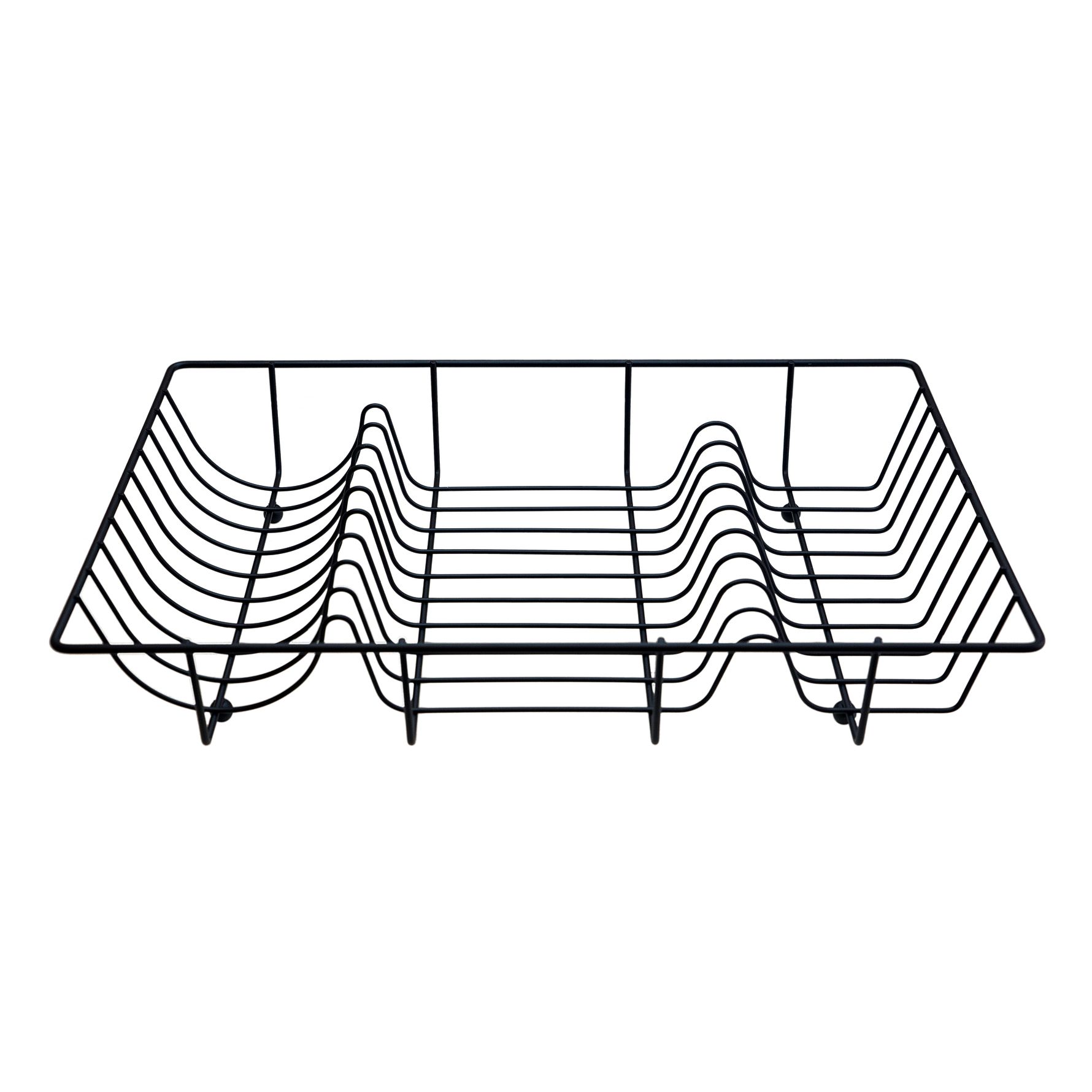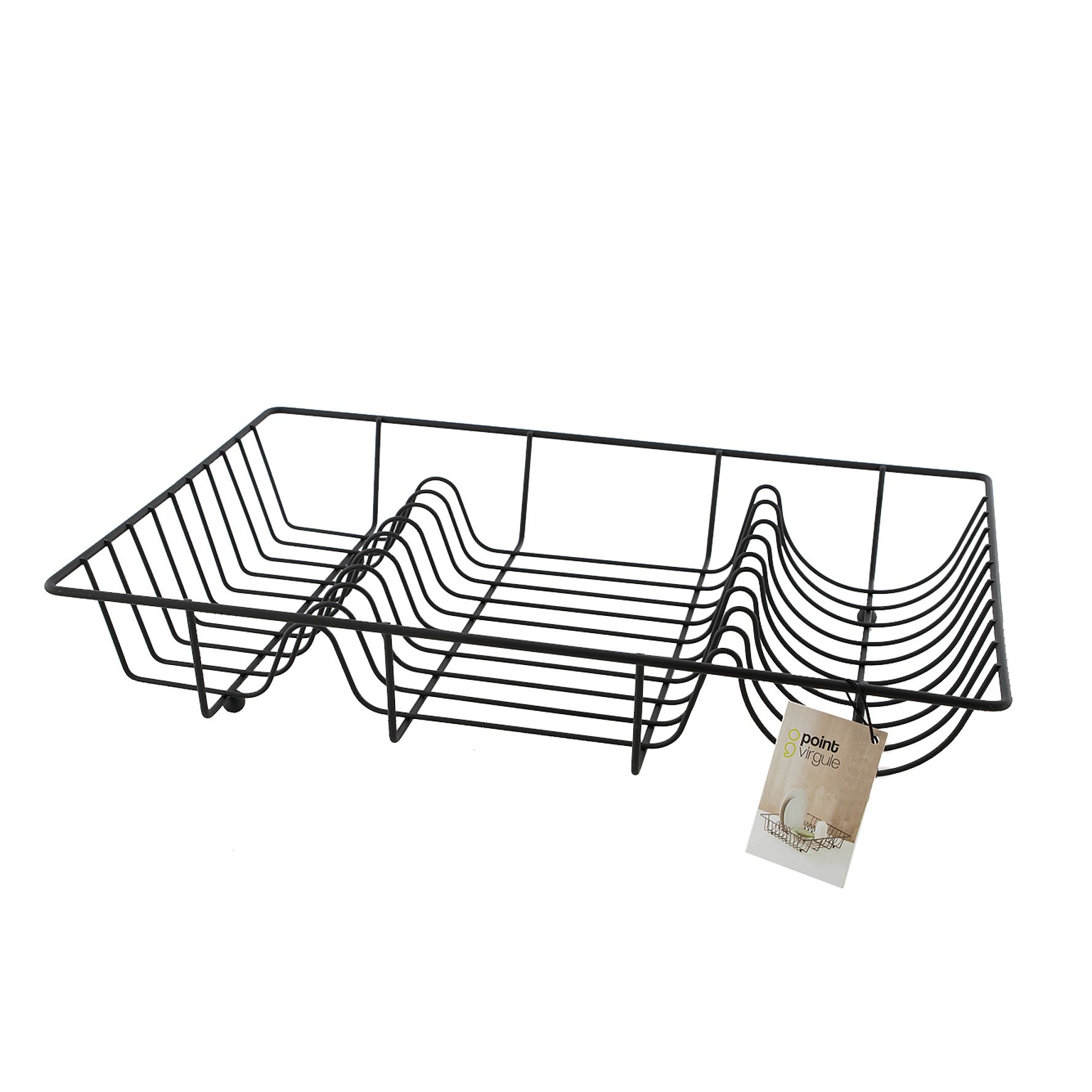 Stilrent og pladsbesparende opvaskestativ i sortlakeret metal. Med riller til tallerkener og plads til glas og bestik.
