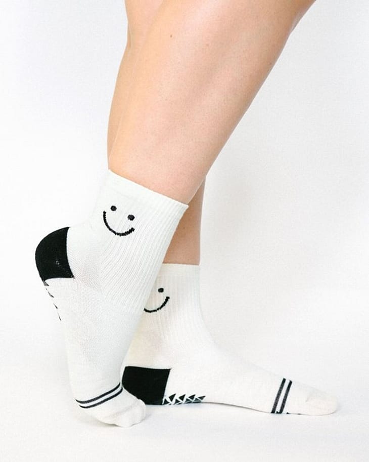 Pointe Studio HAPPY RUNNER GRIP ANKLE, Grip Sock, skridsikker gripstrømper. Farve white, str. 35-38, i 33% ccolmax polyester, 60% Nylon, 7% Spandex.
