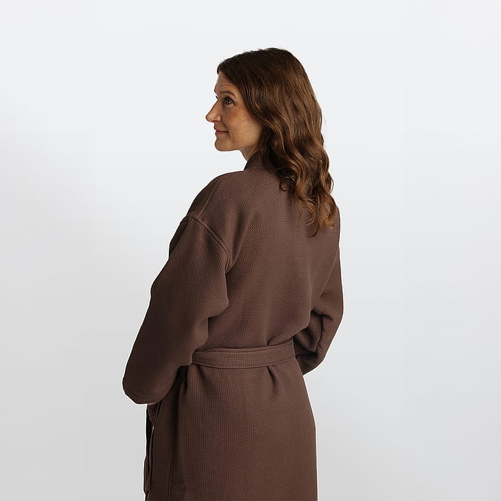 Luksuriøs kimono i klassisk vaffelvævning, fremstillet af 100% bomuld med et blødt frottélag for ekstra varme og komfort.