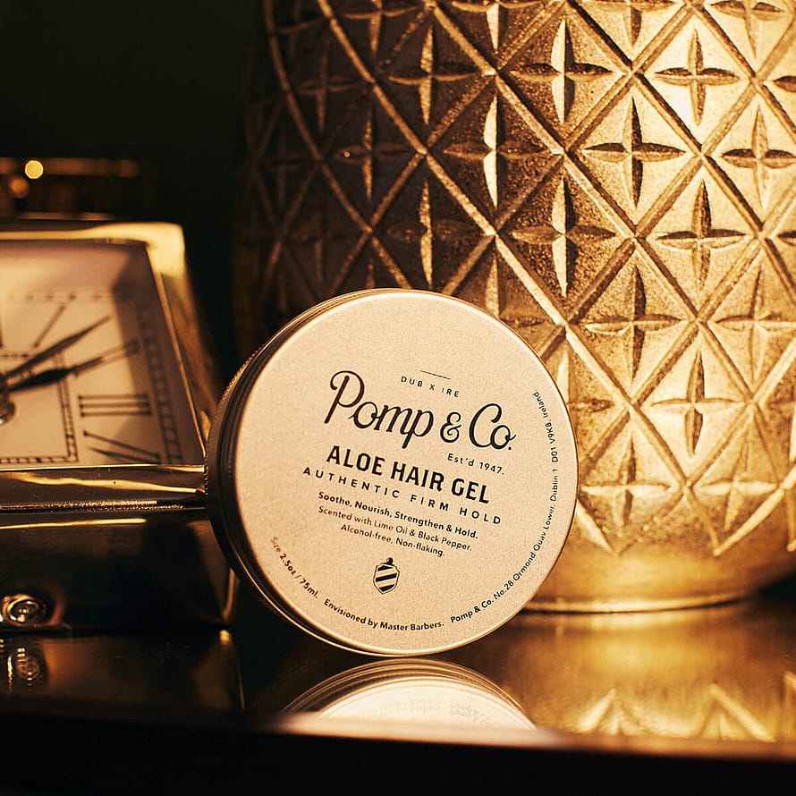 Aloe Hair Gel fra Pomp & Co. er en gennemsigtig fast gel med naturlig, ren glans og stærkt hold.